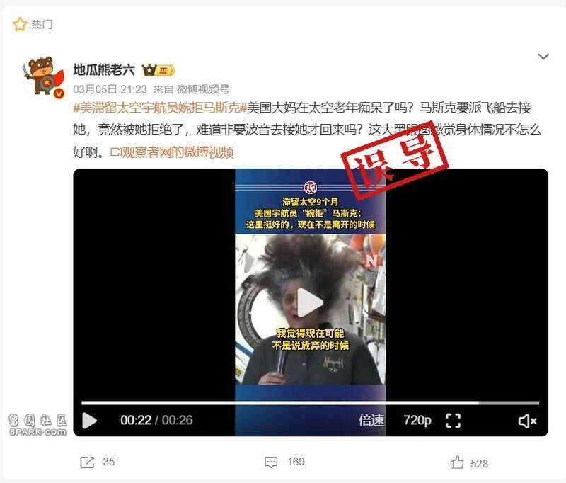综上所述,网传“威廉姆斯‘婉拒’马斯克,不愿返回地球”的说法存在误导。威廉姆斯在视频中表达的内容,针对的是马斯克提出的“提前使国际空间站脱离轨道”的建议,而非将其接回地球的计划。